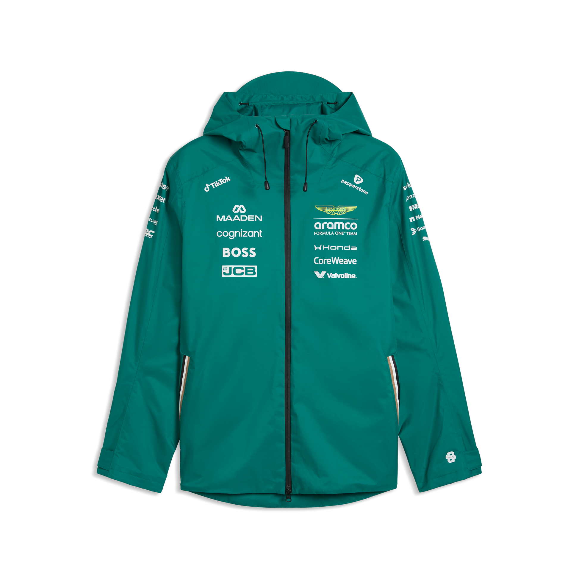 Show your support for the Aston Martin Aramco Formula One® Team with the official Aston Martin F1 Team 2026 Rain Jacket for Men. Crafted in the iconic Green Lux color, this rain jacket combines sleek style with practical protection, featuring authentic team branding inspired by the 2026 season. Lightweight, weather-resistant, and designed for comfort, it’s the perfect way for fans to stay dry while showing their passion for the Silverstone-based team.