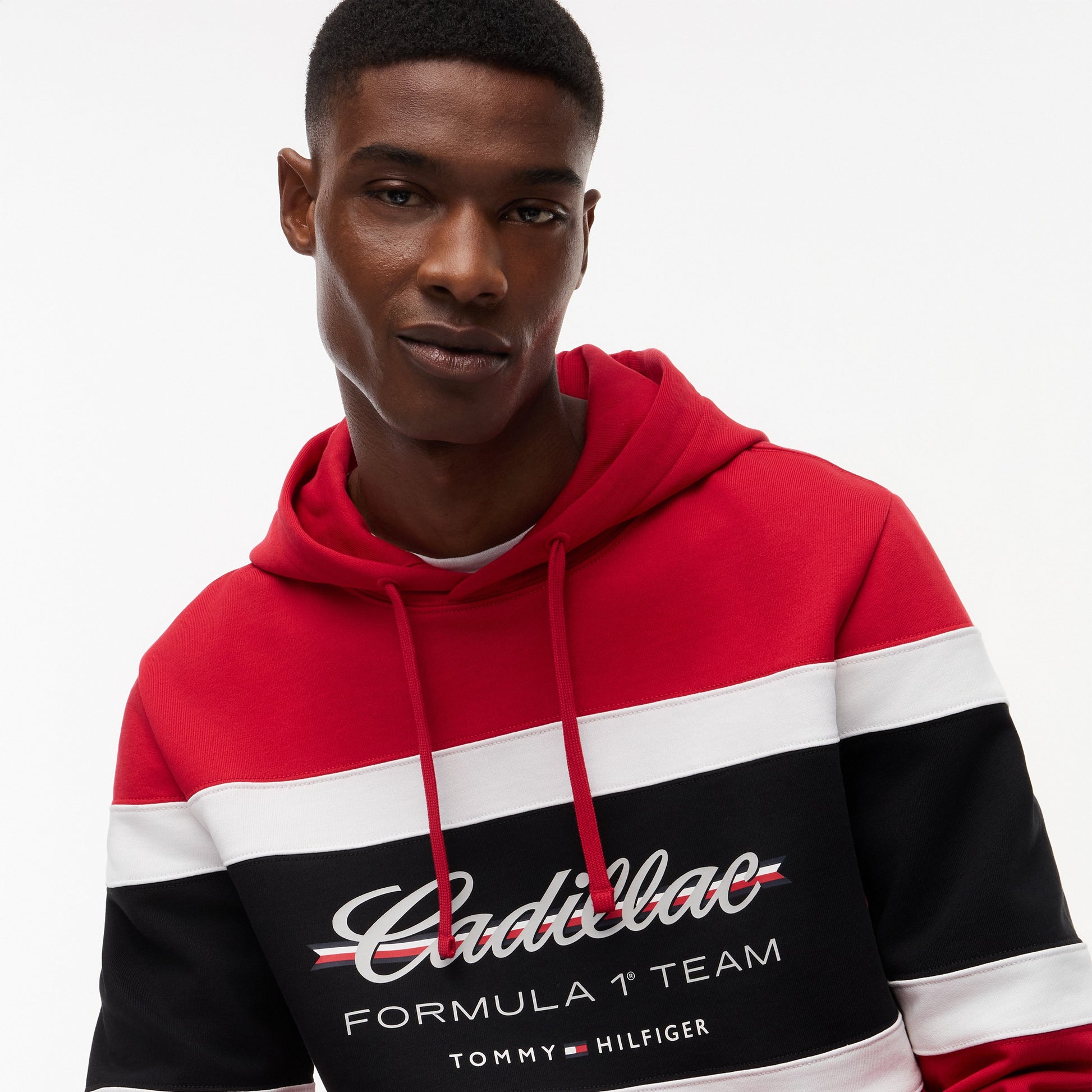 Stay comfortable with motorsport style in the Cadillac F1 x Tommy Hilfiger Panelled Hoodie for Men in Red. This premium men’s hoodie blends bold panelled design with iconic Tommy Hilfiger x Cadillac Formula 1 Team branding for standout casual appeal.