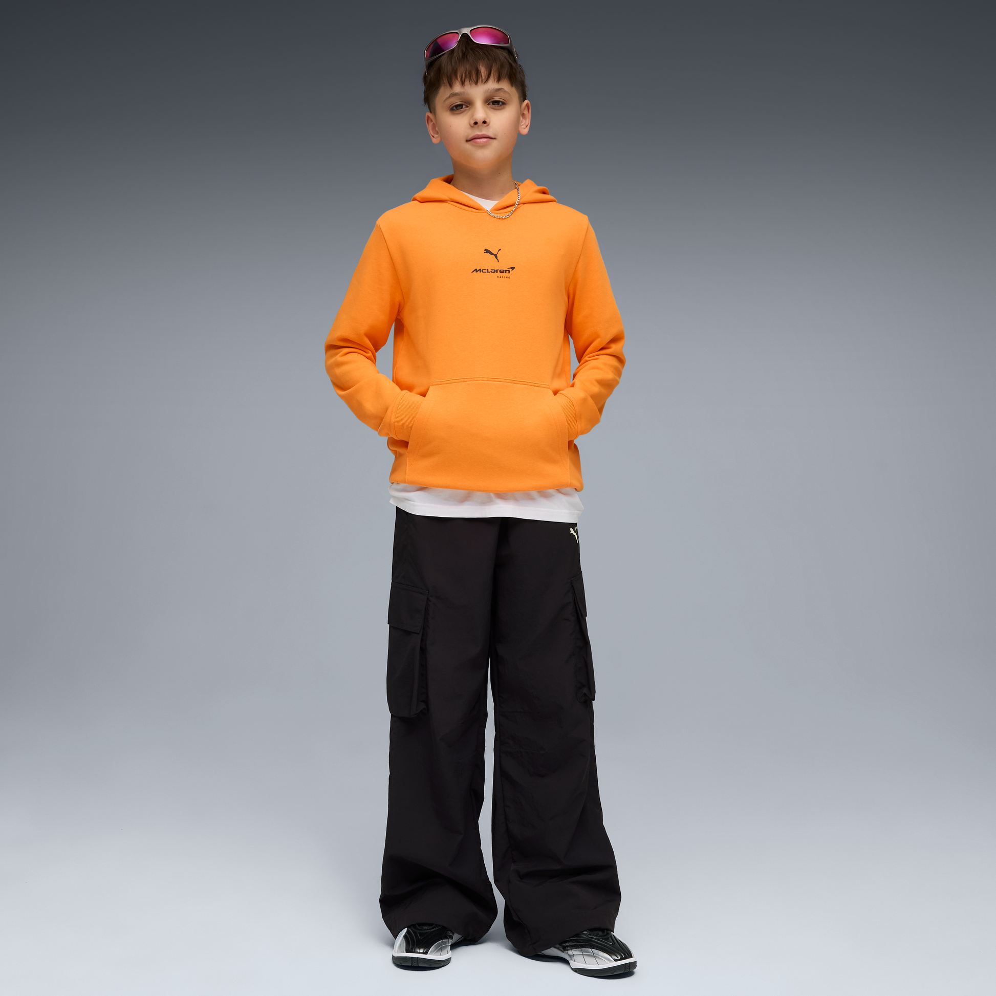 Keep young fans cosy in style with the McLaren Racing F1 Essential Hoodie for kids in Papaya. Featuring a comfortable fit, cosy hood, and official McLaren Racing F1 branding, this hoodie is perfect for race days, casual wear, or motorsport-inspired everyday style.