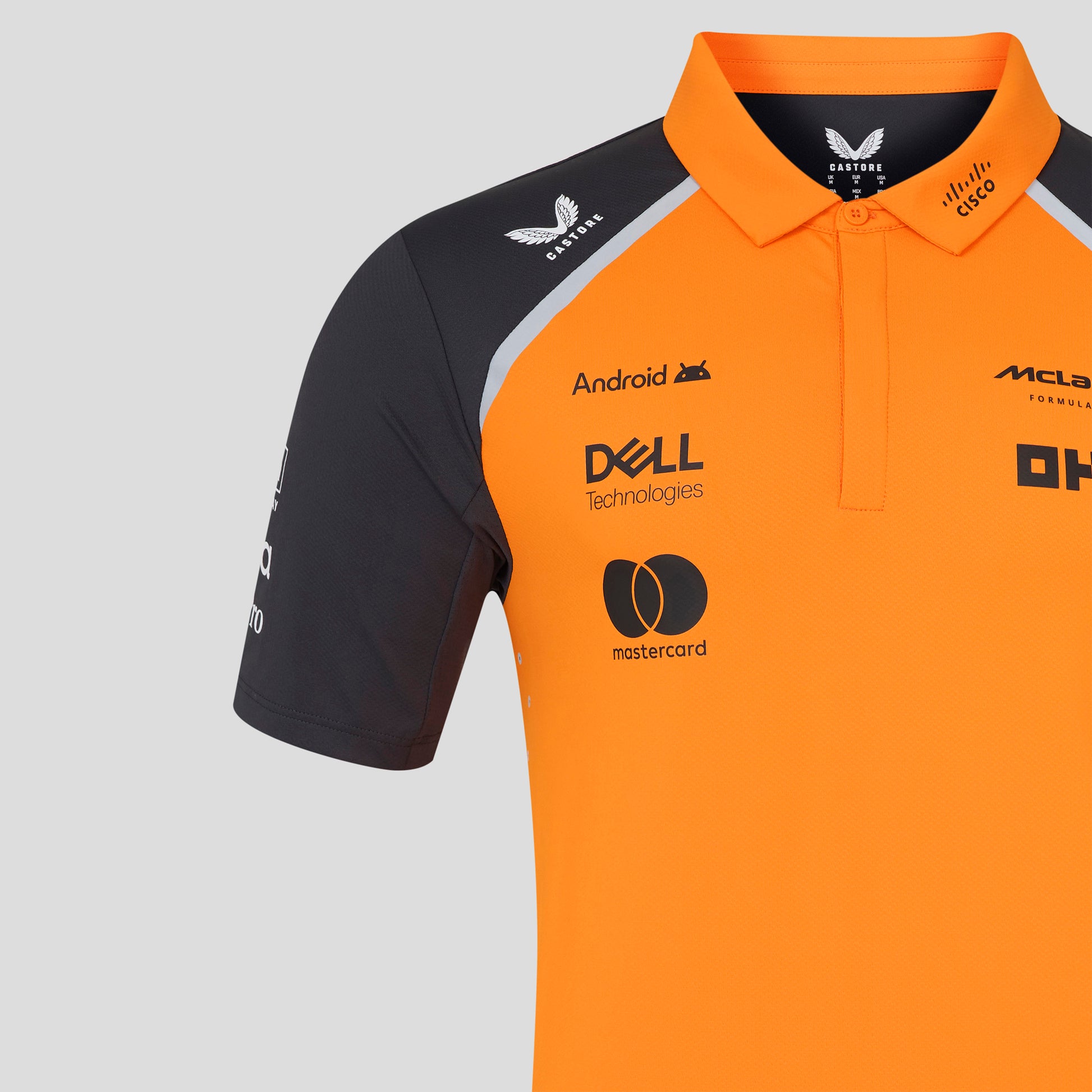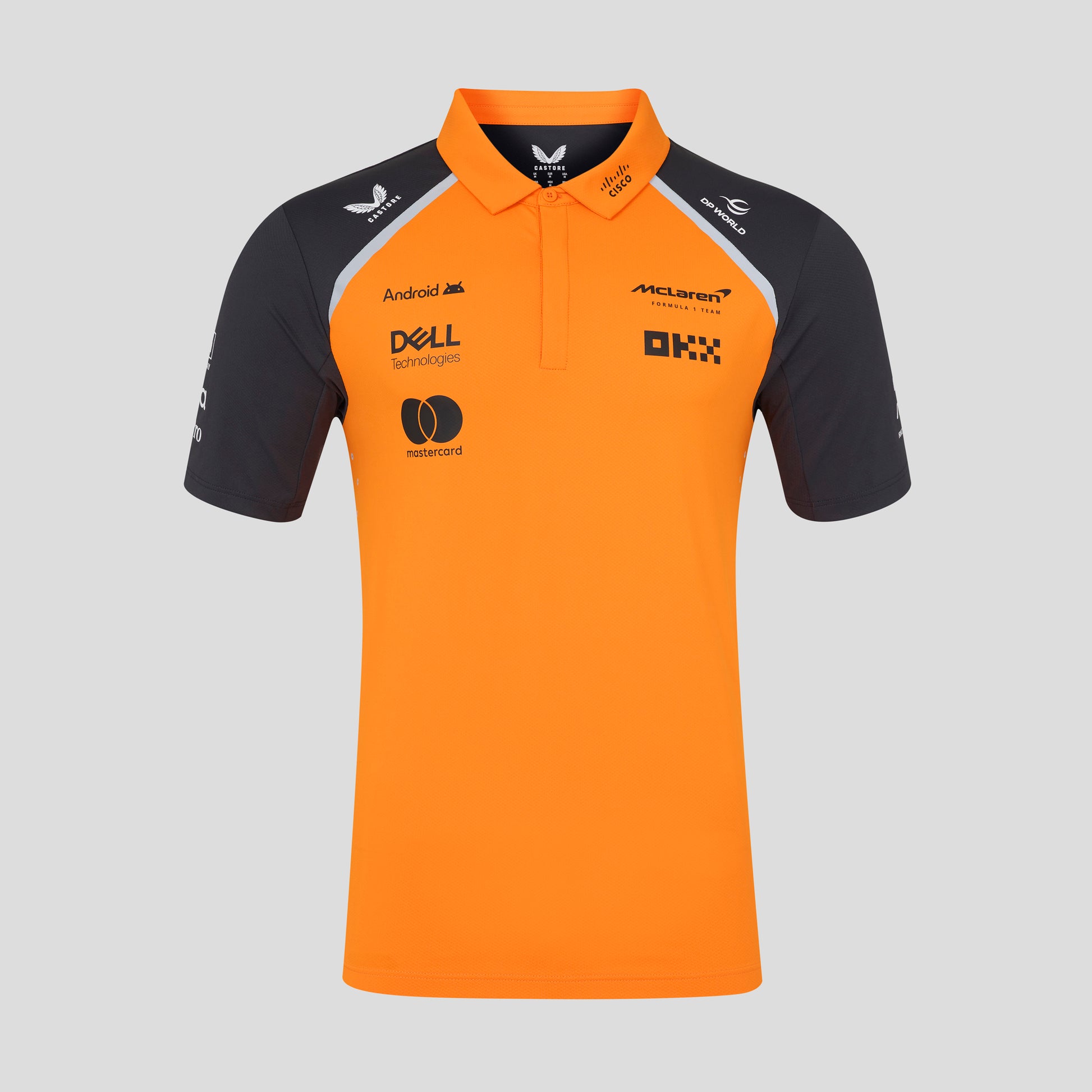 McLaren Racing F1 will look to collect consecutive constructor championships in 2025, join them on their journey with the Official McLaren Formula one Mens Team Polo. Both Lando Norris and Oscar Piastri will be sporting this polo in interviews and in and around the paddock for the 2025 F1 season.
